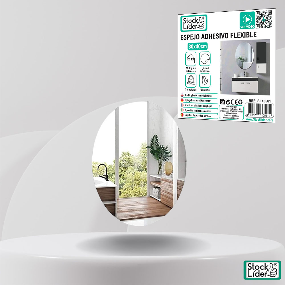 El espejo adhesivo flexible de StockLider es la solución perfecta para quienes buscan funcionalidad sin renunciar al estilo. Su formato de 30×40 cm lo convierte en un elemento decorativo ideal para baños, vestidores, dormitorios, entradas o cualquier estancia del hogar.