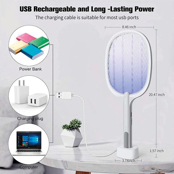 Matamoscas y lámpara de mosquitos recargable 2 en 1 con soporte