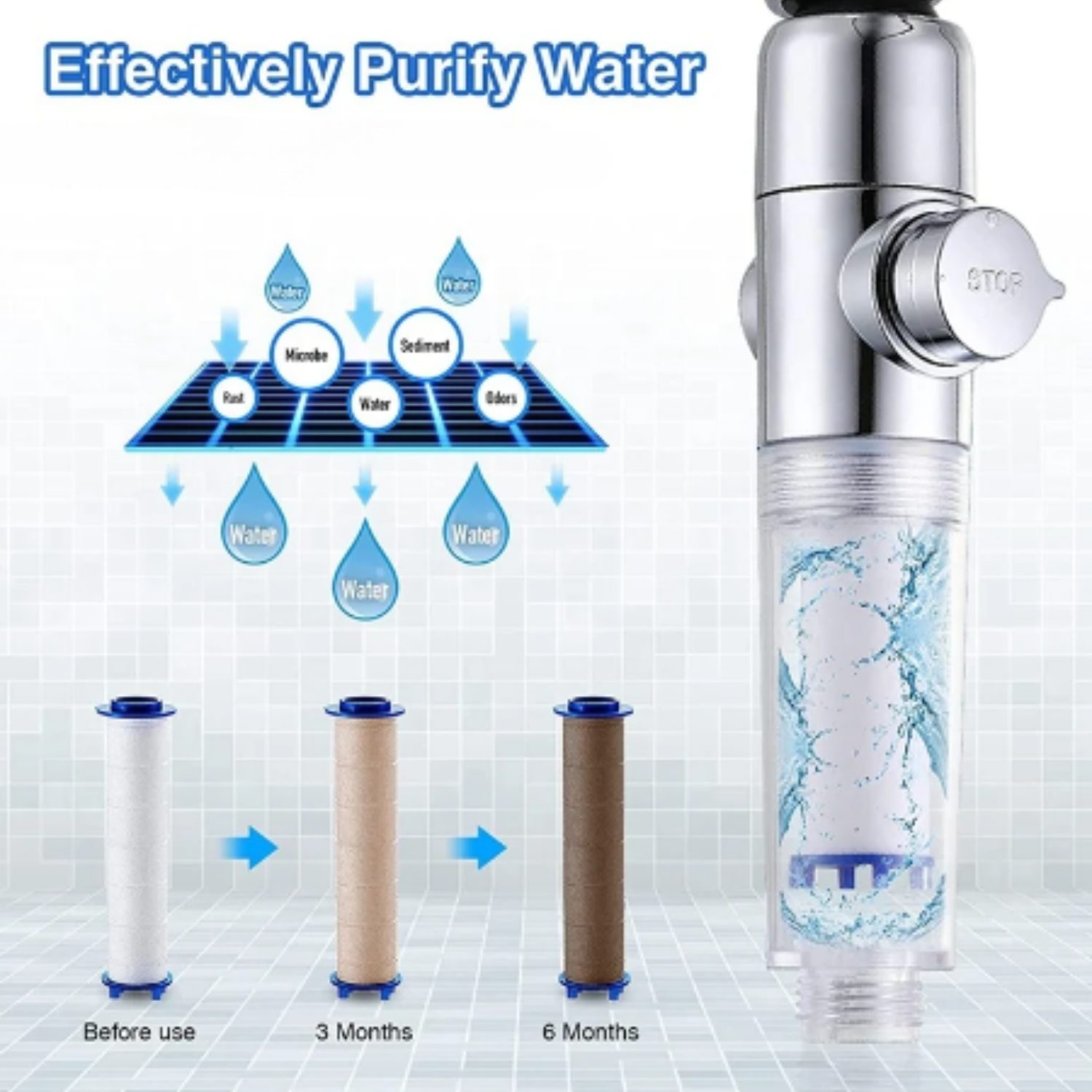 El filtro para alcachofa ayuda a purificar el agua, eliminando impurezas y proporcionando un agua más limpia y saludable para su piel y cabello.