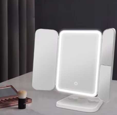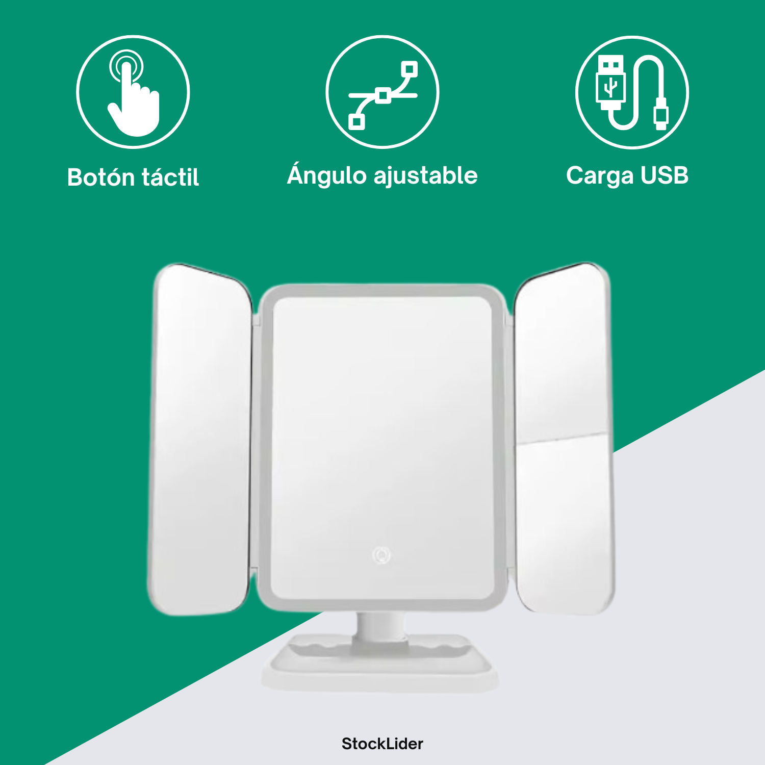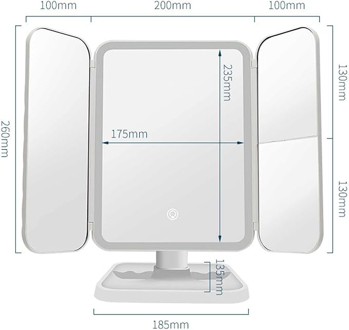 Encendido y apagado automático con sensores de alto efecto: la iluminación se encenderá o apagará al plegar o desplegar el espejo de tocador de 3 lados, sin permitir manualmente la iluminación. El espejo se mantiene limpio sin huellas dactilares. Es perfecto para influenciadores, KOLs, modelos, amantes del maquillaje o simplemente cualquier persona que desee un espejo de maquillaje profesional para un maquillaje impecable.