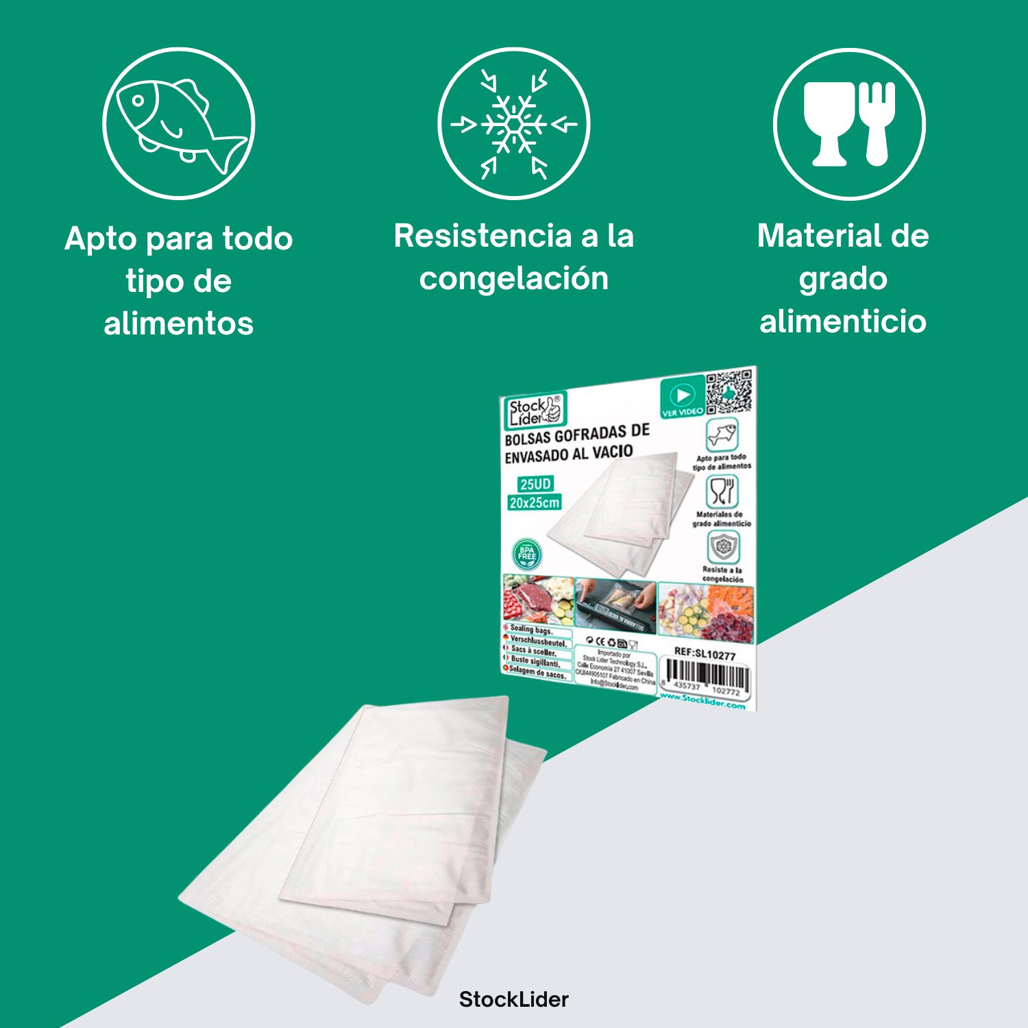 Bolsas gofradas de envasado al vacío 20x25cm | Pack 5 unidades