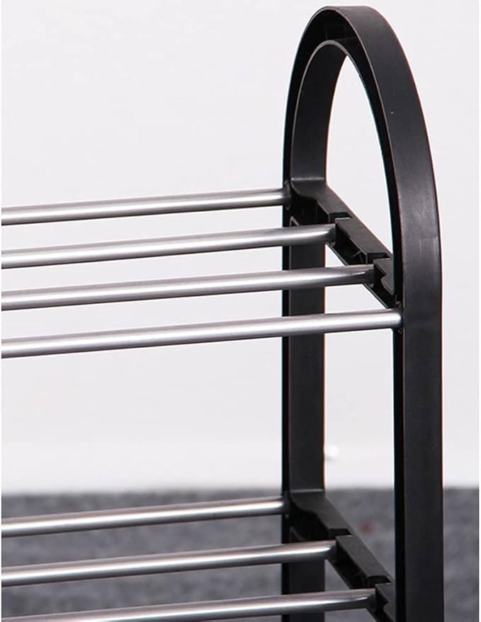 Material: tubo de hierro galvanizado, hecho de plástico PP en ambos lados del zapatero, alta resistencia, no es fácil de romper, buena durabilidad. Cuenta con tiras de refuerzo en la barra horizontal para evitar que el tubo redondo se caiga o se afloje.