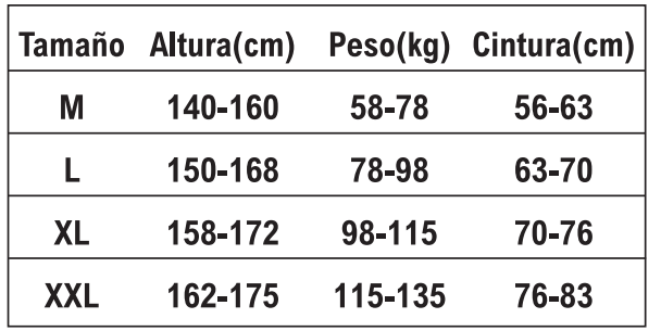 Está disponible en 4 tallas: M, L , XL y XXL.