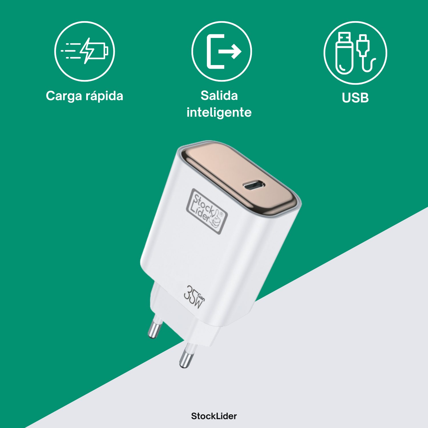 Adaptador cargador con salida USB para usar en todo tipo de dispositivos electrónicos y electrodomésticos.