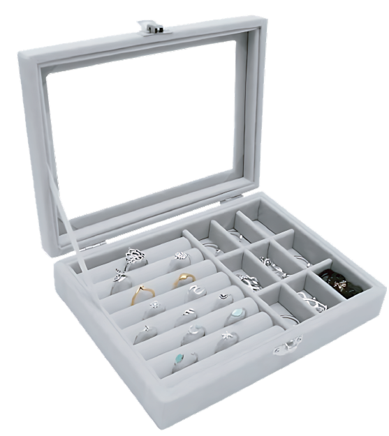 Hay 2 bandejas diferentes para guardar joyas en total, perfecto para organizar tus pulseras, anillos, pendientes y collares.