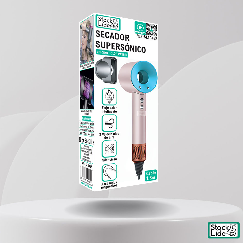 Cuenta con un potente motor de 110.000 rpm para un secado rápido. Mantén tu brillo natural y evita daños por calor. Perfecto para cada tipo de cabello con una variedad de ajustes y accesorios magnéticos.