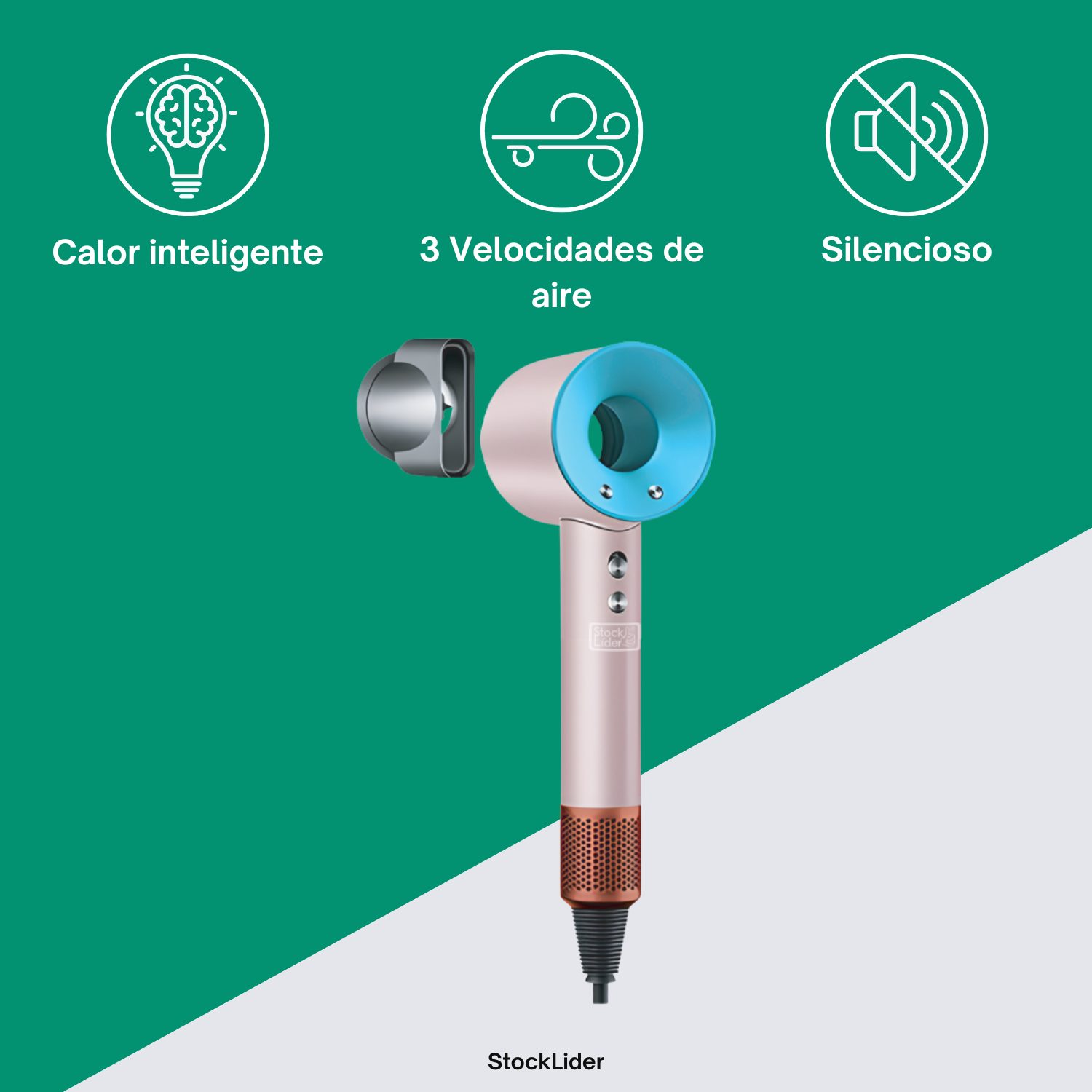 Secador de alta eficiencia con diseño innovador que controla el flujo de aire caliente y frío proporcionando un secado suave y sin encrespamientos.