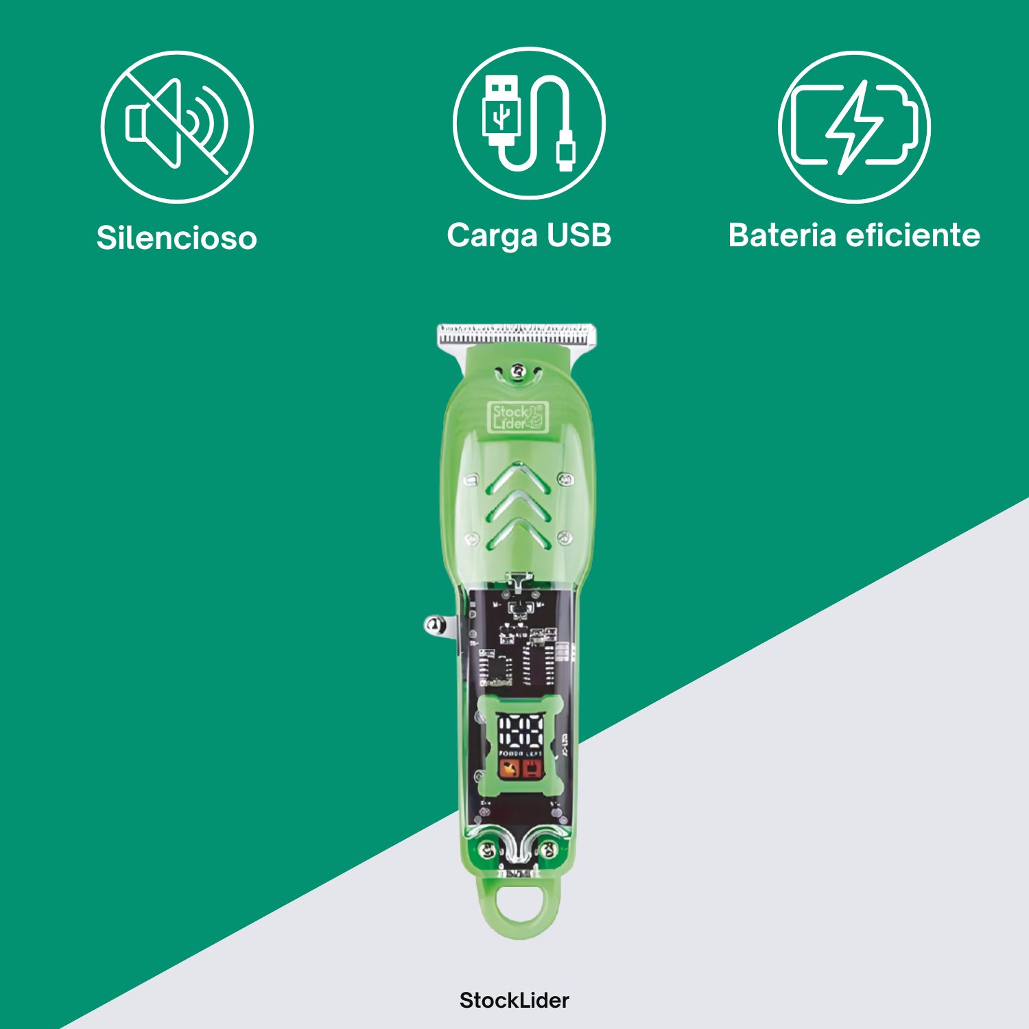 Con un cuerpo transparente que deja ver su innovador mecanismo interior, esta cortadora no solo destaca por su estética, sino también por su funcionalidad. Cuenta con un motor silencioso de 7000 RPM, y una pantalla LED que muestra el nivel de carga y alerta de lubricación, garantizando un control total durante su uso.