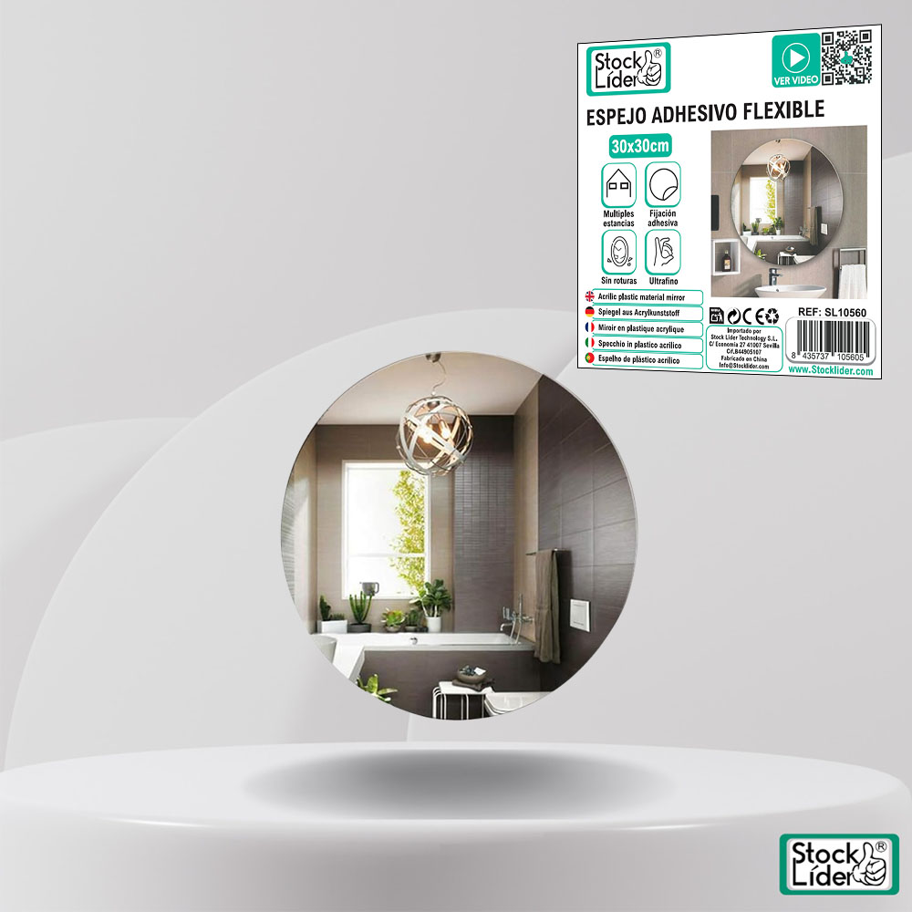 El Espejo Adhesivo Flexible de StockLider combina funcionalidad, seguridad y diseño en una solución moderna para decorar o ampliar visualmente cualquier espacio. Con su tamaño de 30×30 cm y su instalación sencilla, es ideal para hogares, oficinas, vestidores, baños o habitaciones infantiles.