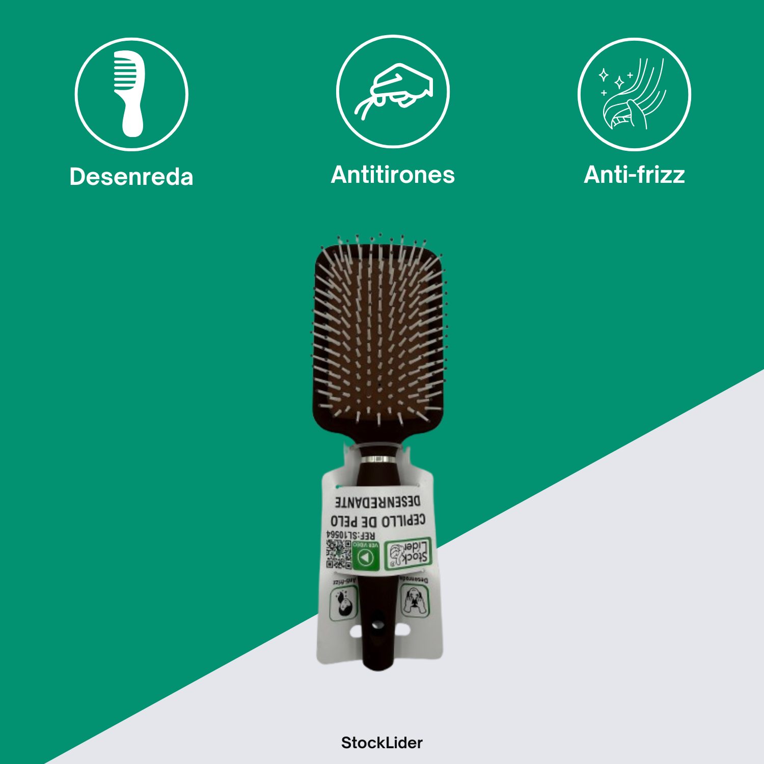 El cepillo desenredante Stock Líder está diseñado para ofrecerte una experiencia de peinado suave y sin dolor. Gracias a su estructura ergonómica y cerdas flexibles, desenreda el cabello fácilmente sin dañarlo ni generar molestos tirones, incluso en los cabellos más rebeldes.