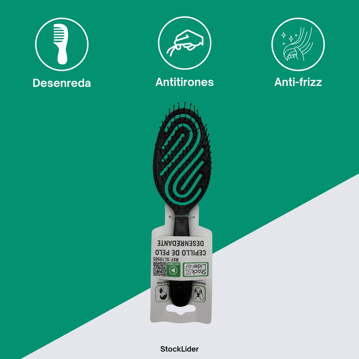 El cepillo desenredante Stock Líder está diseñado para ofrecerte una experiencia de peinado suave y sin dolor. Gracias a su estructura ergonómica y cerdas flexibles, desenreda el cabello fácilmente sin dañarlo ni generar molestos tirones, incluso en los cabellos más rebeldes.