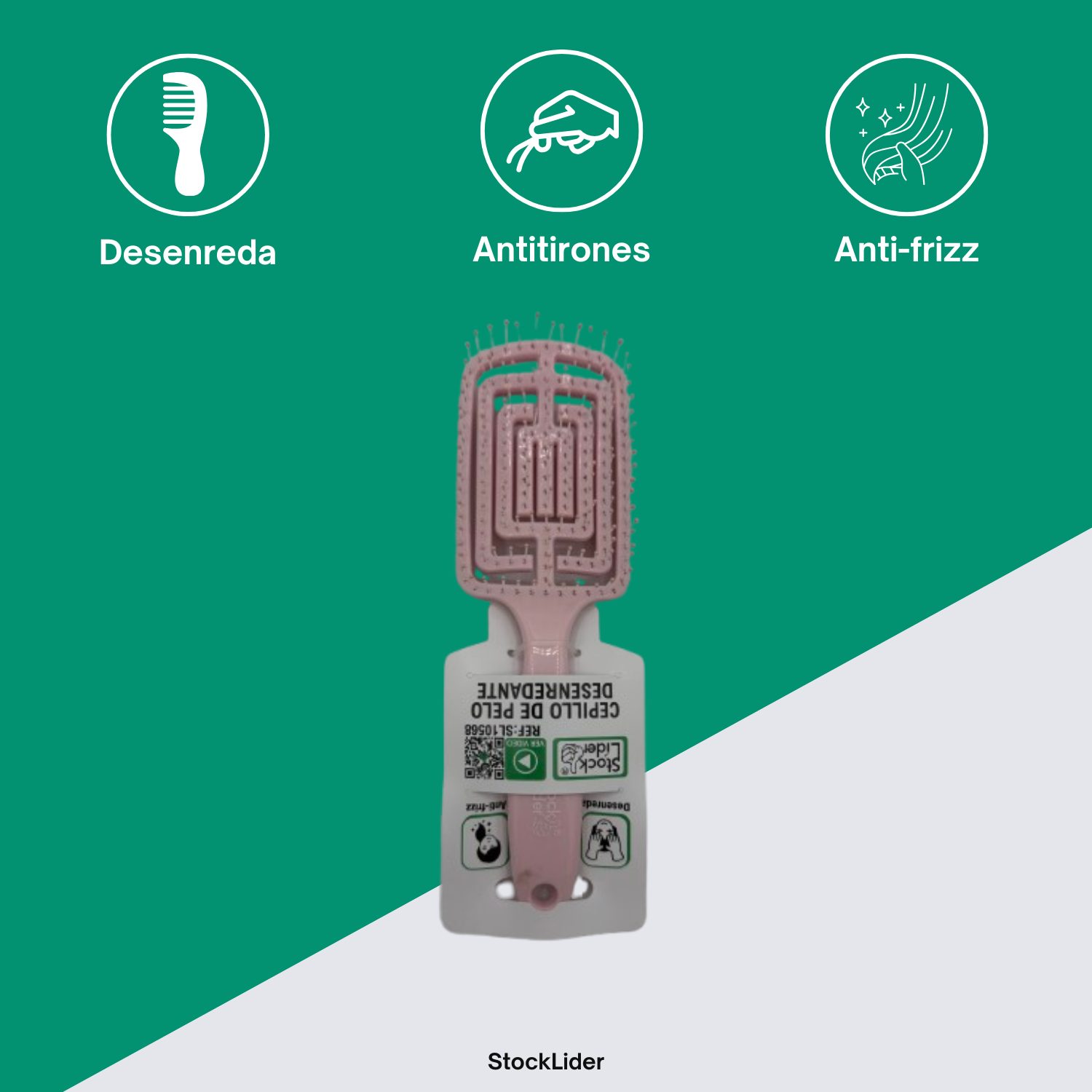 El cepillo desenredante Stock Líder está diseñado para ofrecerte una experiencia de peinado suave y sin dolor. Gracias a su estructura ergonómica y cerdas flexibles, desenreda el cabello fácilmente sin dañarlo ni generar molestos tirones, incluso en los cabellos más rebeldes.