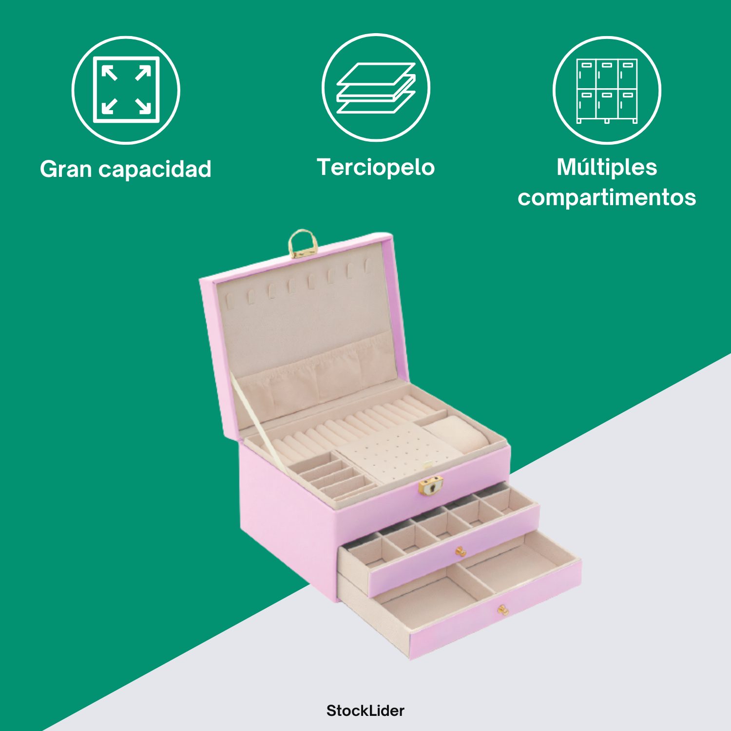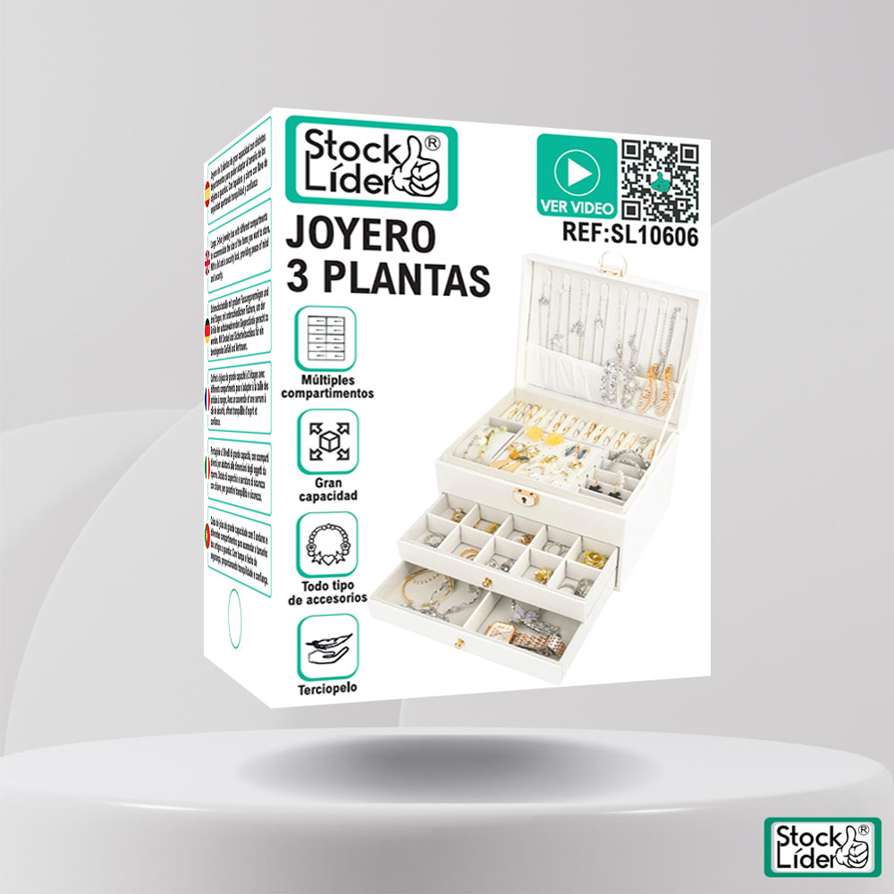 El Joyero de 3 Plantas StockLider ofrece una gran capacidad con múltiples compartimentos diseñados para adaptarse al tamaño y forma de cada una de tus joyas. Desde delicados collares hasta anillos, relojes y pendientes, todo tendrá su lugar perfectamente ordenado.