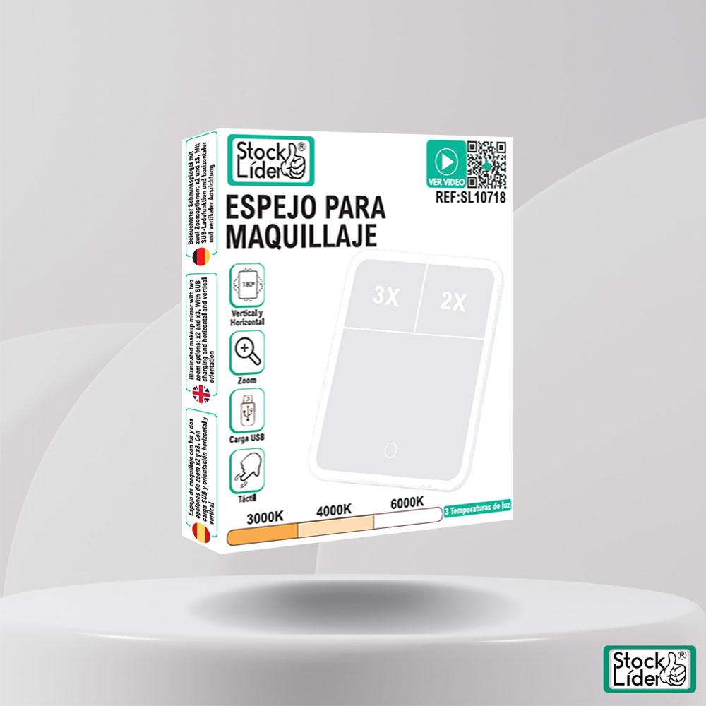Fabricado con materiales resistentes de vidrio y ABS, este espejo combina elegancia y durabilidad. Con su diseño portátil, luz ajustable y sistema de aumento, el Espejo para Maquillaje Stock Líder REF: SL10718 es el aliado perfecto para realzar tu belleza en cualquier momento.