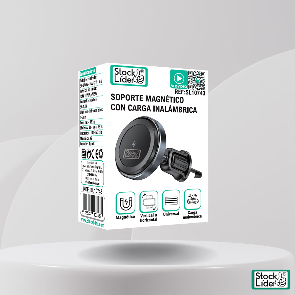 Este soporte, de fácil instalación y uso, cuenta con un magnético de alta calidad que asegura tu dispositivo en cualquier zona de tu vehículo, ya sea el salpicadero, el parabrisas, el volante o la pantalla táctil. Su diseño elegante y compacto no solo es funcional, sino también ideal para mantener tu automóvil ordenado y sin cables.