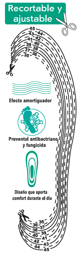 Estas plantillas están pensadas para amortiguar la pisada, reduciendo la presión sobre los pies y las articulaciones. Gracias a su estructura ergonómica, proporcionan soporte y estabilidad, ayudando a mantener una postura corporal equilibrada incluso durante un uso prolongado.