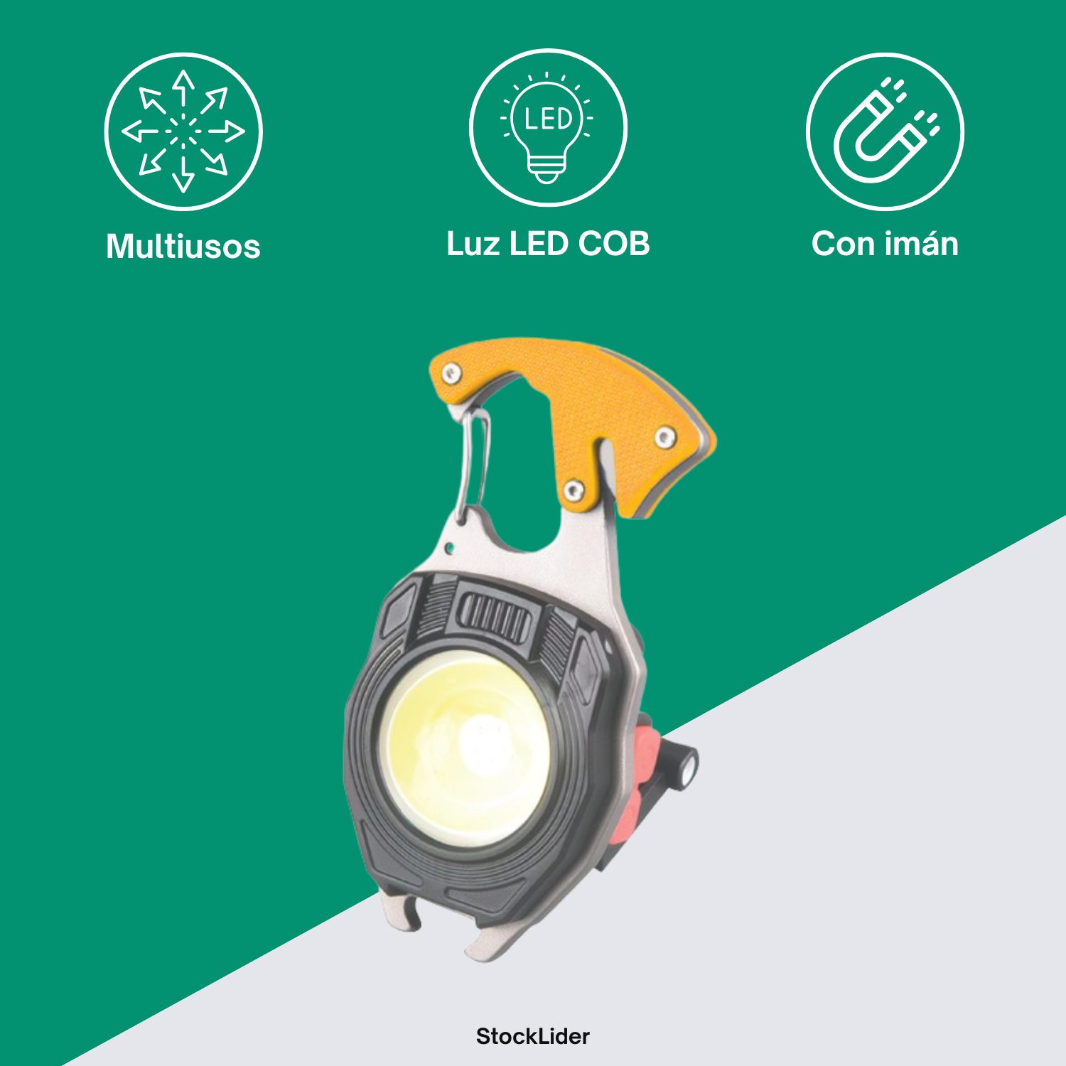 Es el accesorio compacto que lo tiene todo en un solo dispositivo. Diseñada para ofrecerte iluminación, seguridad y utilidad en cualquier momento, esta herramienta portátil combina la potencia de una luz LED COB con múltiples funciones prácticas que te sacarán de apuros en el día a día.