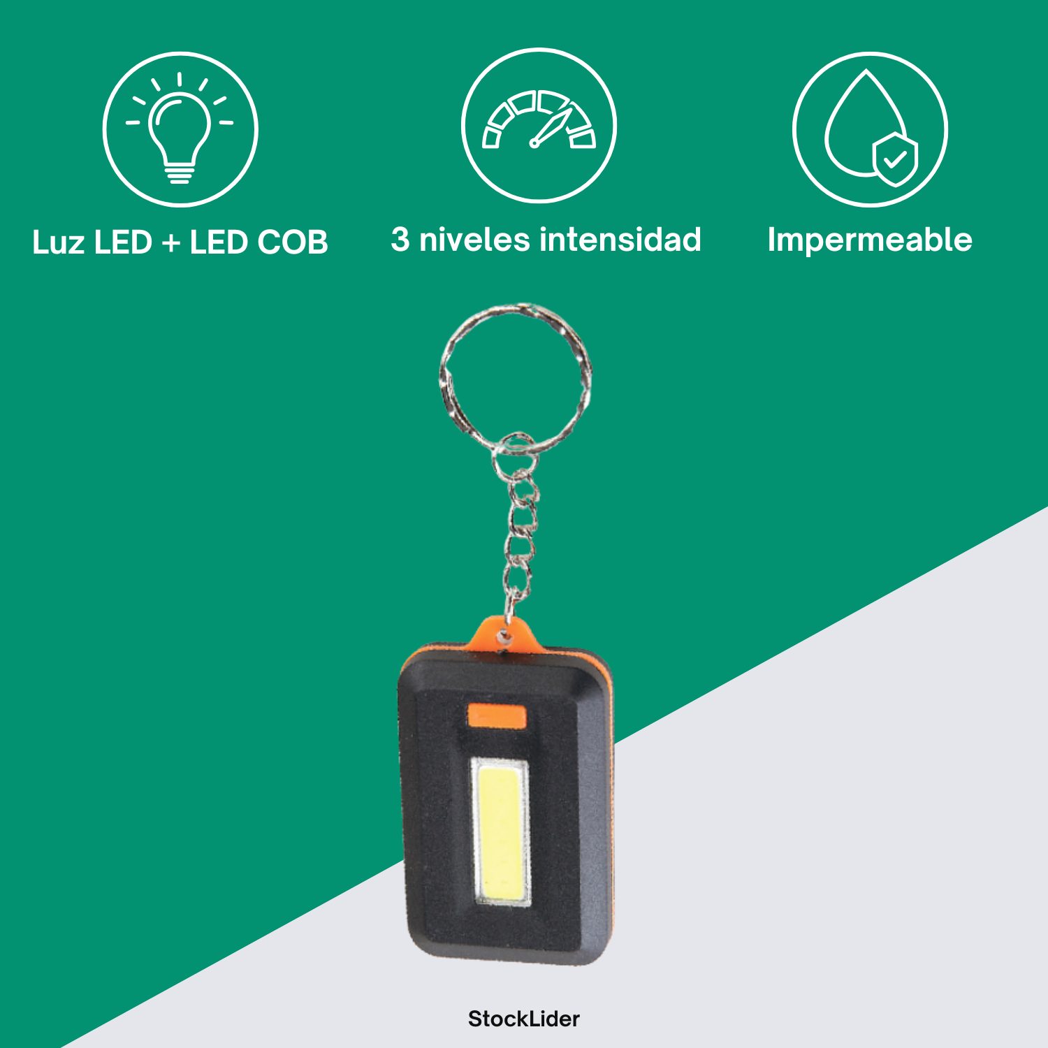 Funciona con 3 pilas AAA (no incluidas) y cuenta con un práctico gancho metálico para colgar o sujetar donde lo necesites. Con la Linterna Llavero, siempre tendrás luz a tu alcance cuando más la necesites.