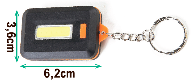 Su tamaño compacto y diseño portátil permiten llevarla cómodamente en el llavero, mochila o cinturón, sin ocupar espacio. A pesar de su tamaño, proporciona una luz intensa con 3 modos de iluminación (alta, baja y estroboscópica), adaptándose a cualquier situación.