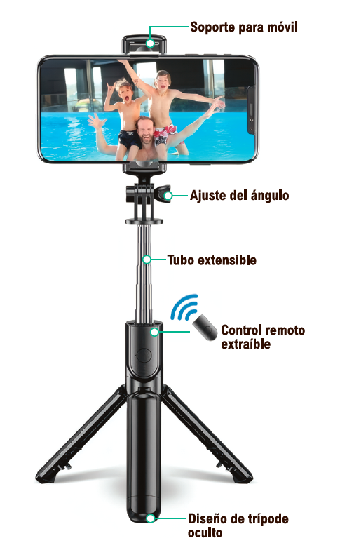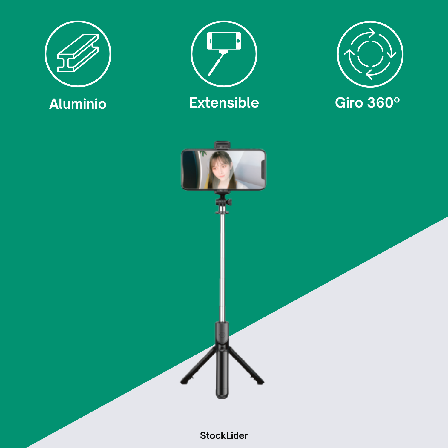 El palo selfie con trípode es el accesorio perfecto para capturar fotos y vídeos con total estabilidad y libertad. Su diseño 2 en 1 permite usarlo tanto como palo selfie portátil como trípode de sobremesa o suelo, adaptándose a cualquier situación: selfies, vídeos, directos, viajes, deportes o reuniones familiares.