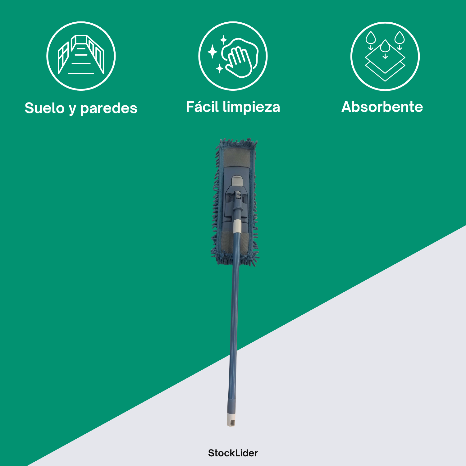 Diseñada para ser ligera, manejable y fácil de limpiar, esta mopa es ideal para múltiples superficies: suelos, paredes, cristales, ventanas e incluso automóviles. Además, incluye recambio de microfibra, lo que alarga la vida útil del producto y asegura un rendimiento constante en cada uso.
