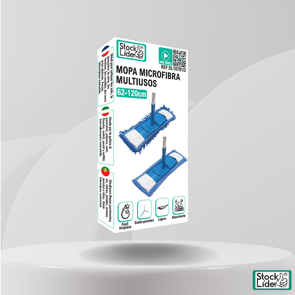 La mopa de microfibra multiusos Lídr es la solución práctica y eficaz para mantener tu hogar impecable con el mínimo esfuerzo. Gracias a su diseño funcional y a su barra telescópica extensible, se adapta fácilmente a diferentes alturas, permitiendo limpiar cómodamente tanto suelos como paredes y techos.