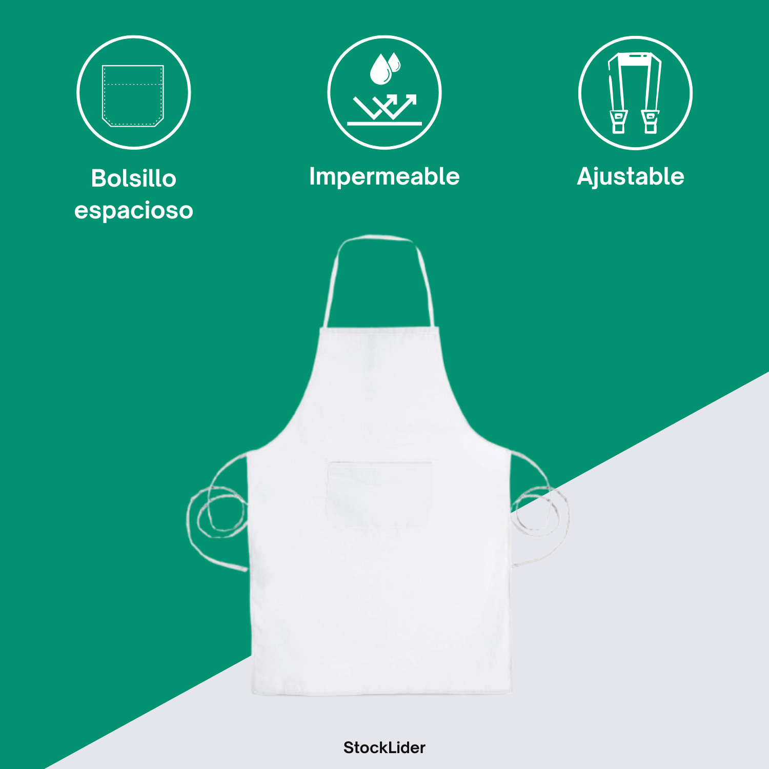 Confeccionado en 100 % poliéster, este delantal destaca por su acabado impermeable, que ayuda a repeler líquidos y manchas, facilitando su limpieza y mantenimiento. Incorpora un bolsillo frontal amplio, perfecto para guardar utensilios de trabajo, blocs de notas, bolígrafos o el móvil, manteniéndolos siempre accesibles.