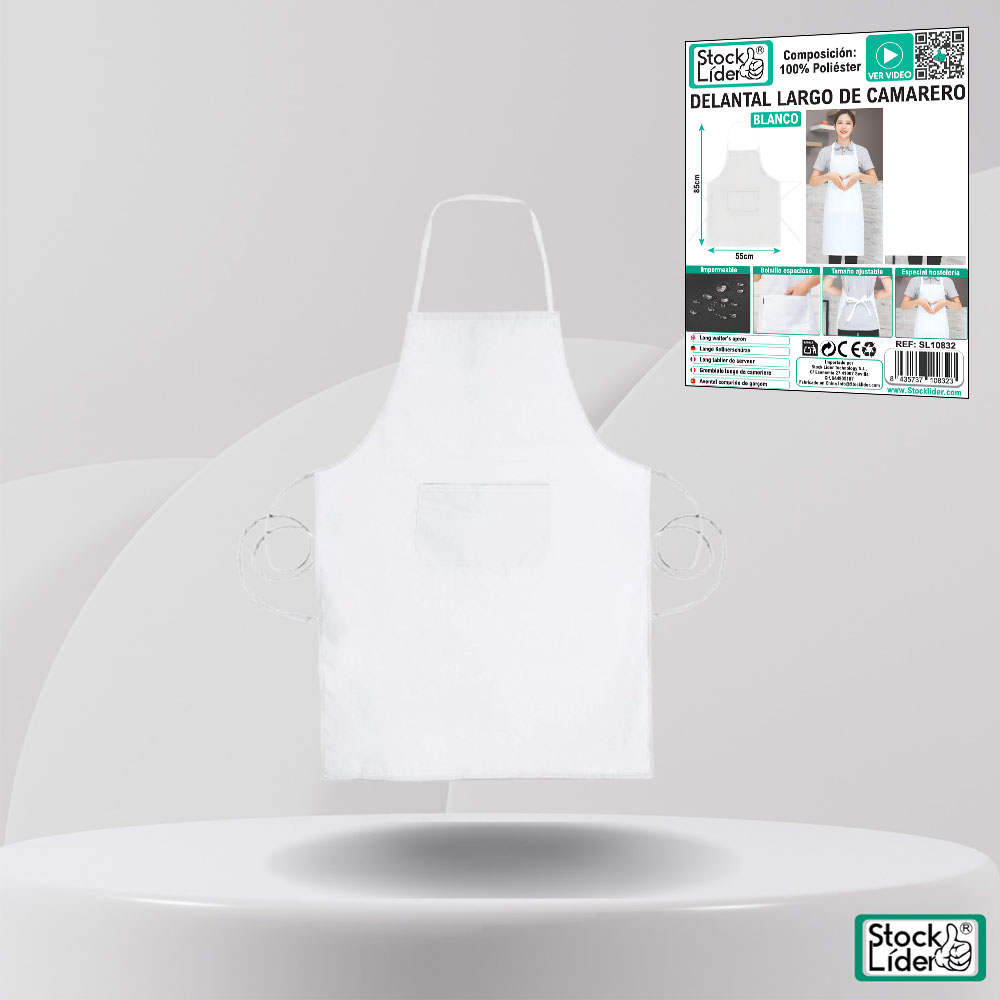 El delantal largo de camarero en color blanco es una prenda imprescindible para profesionales de la hostelería que buscan una imagen limpia, elegante y funcional. Su diseño largo proporciona una excelente cobertura frontal, ideal para proteger la ropa durante el servicio diario en bares, restaurantes, cafeterías y cocinas profesionales.