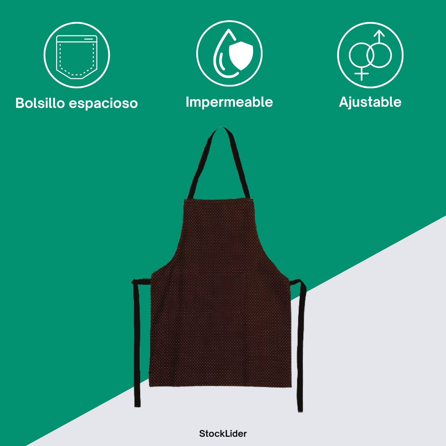 Este delantal destaca por ser lavable y reutilizable, manteniendo su forma y color incluso tras múltiples lavados. Su diseño de lunares aporta un toque elegante y clásico, ideal tanto para uso profesional en hostelería como para uso doméstico.