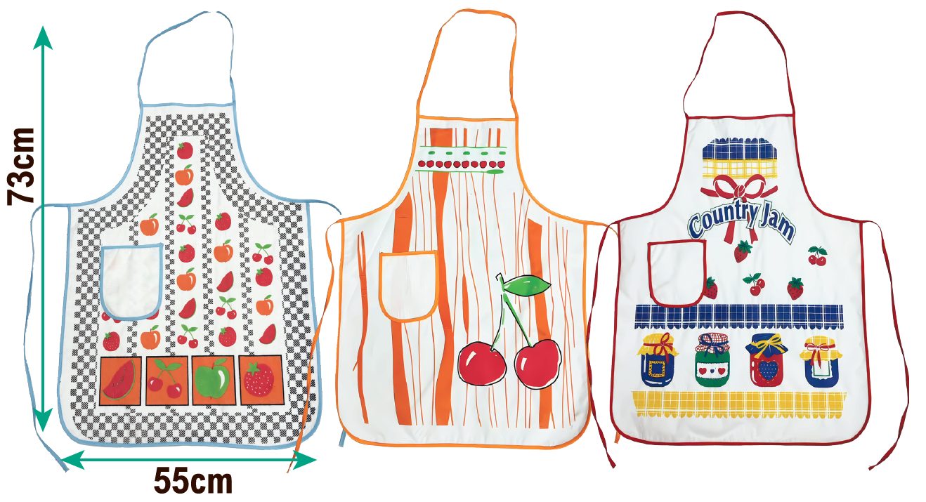 Disponibles en varios diseños estampados alegres y coloridos —con frutas, tarros, patrones divertidos y estilo vintage— estos delantales aportan un toque decorativo único a tu cocina. Son lavables, reutilizables y perfectos tanto para uso profesional como doméstico.