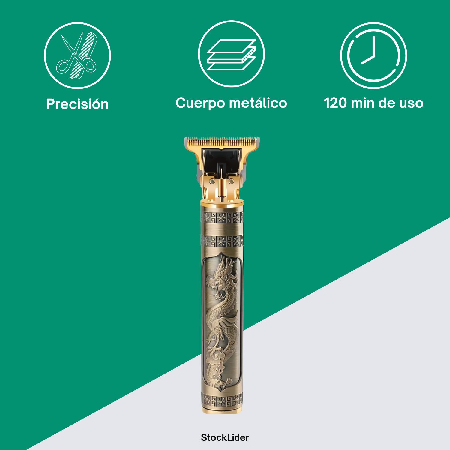 Su cuerpo metálico con grabados estilo Dragón no solo destaca por su belleza, sino que también ofrece una estructura robusta y duradera, pensada para un uso continuo y profesional.