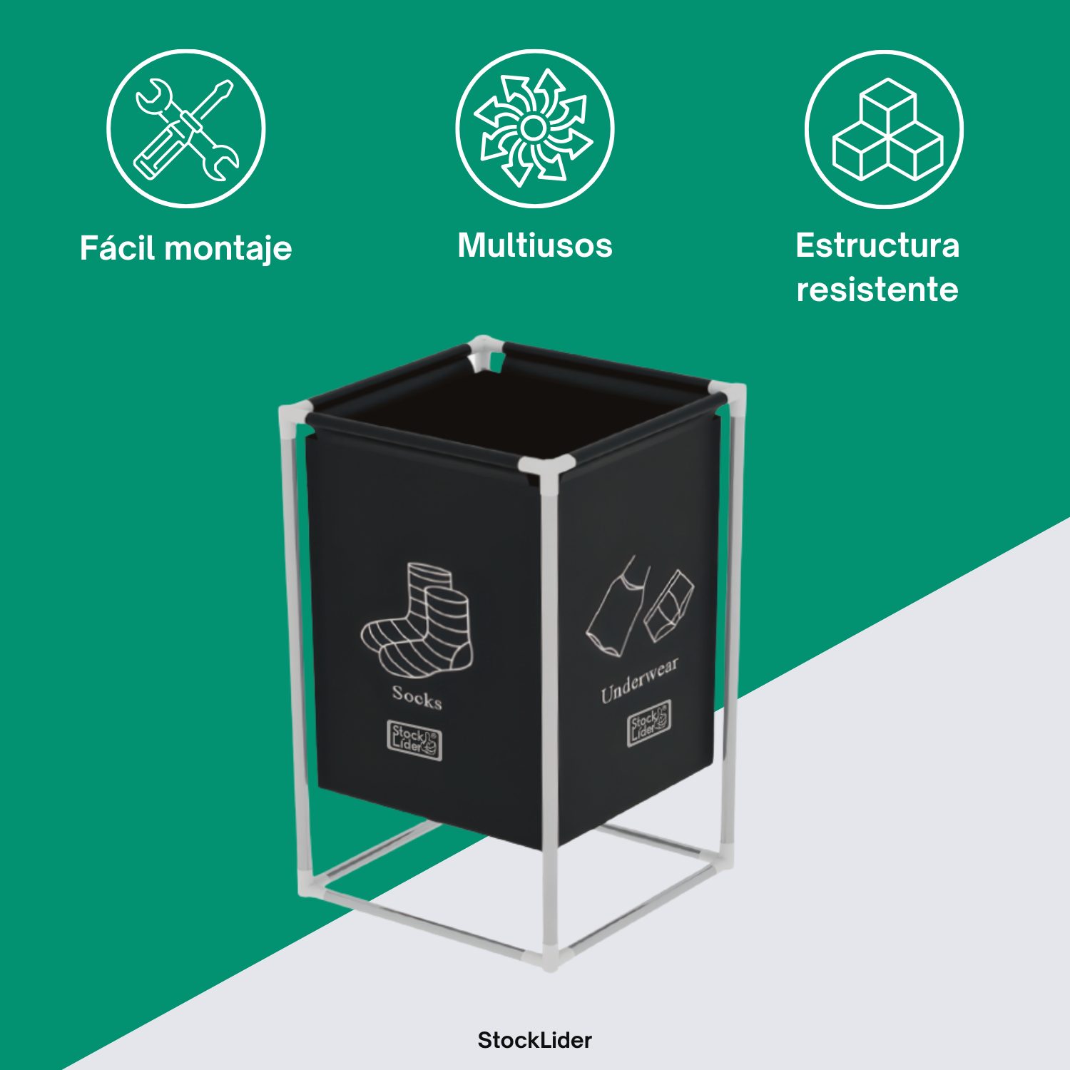 Gracias a su gran capacidad y a su diseño abierto, permite clasificar y almacenar la ropa de forma cómoda. Además, el tamaño es ajustable mediante cintas, adaptándose a distintas necesidades de uso y facilitando una colocación más flexible según el espacio disponible.
