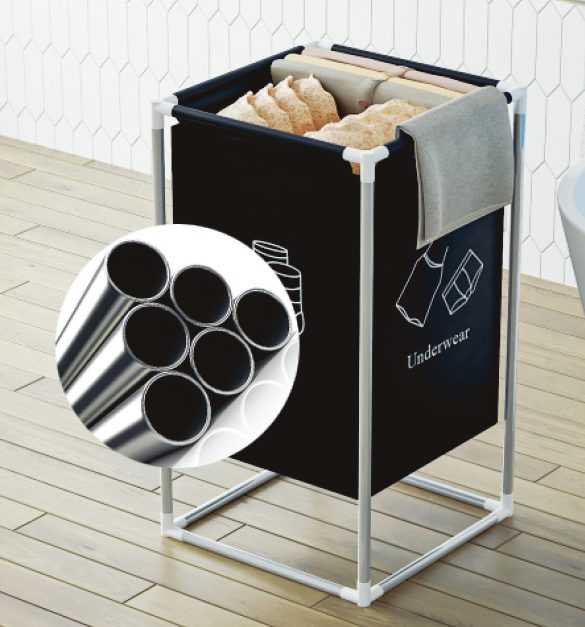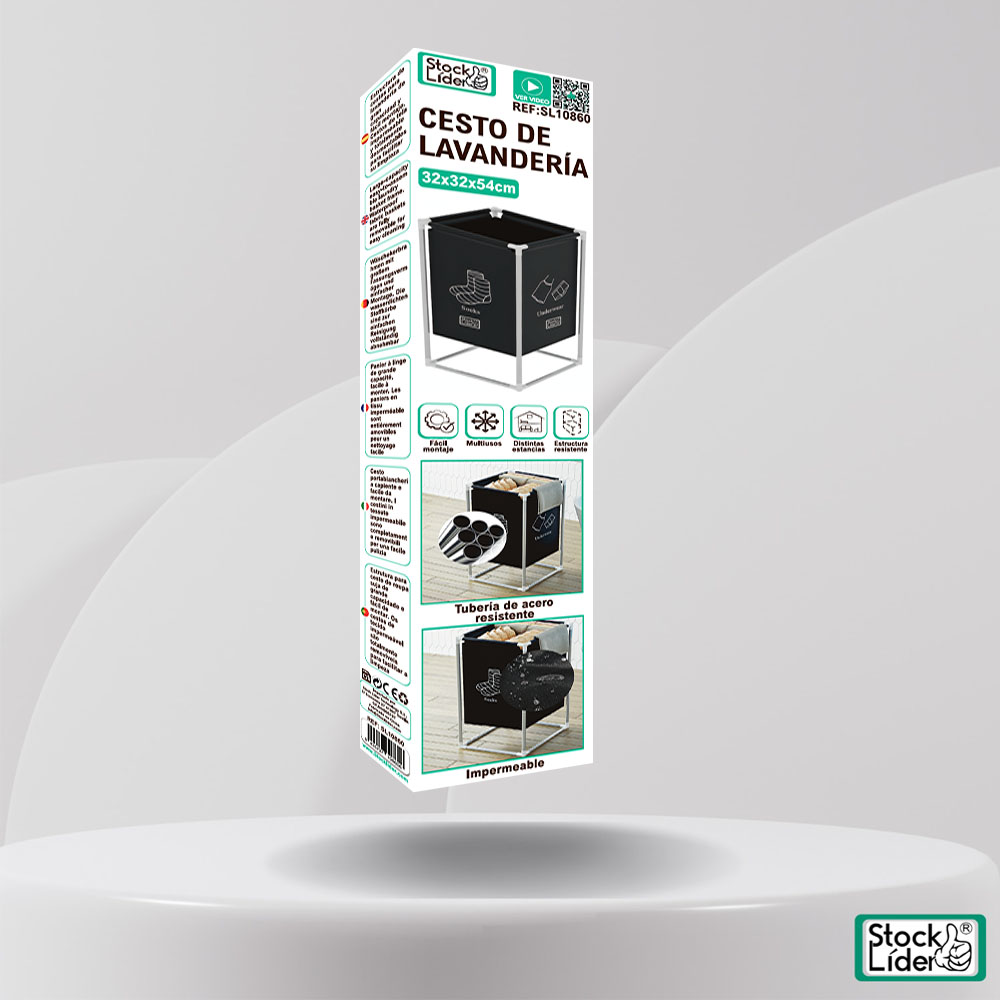 Cuenta con una estructura resistente de tubería de acero, que garantiza estabilidad y durabilidad incluso con cargas elevadas. La cesta de tela es impermeable, ideal para ropa húmeda o mojada, y totalmente desmontable, lo que facilita enormemente su limpieza y mantenimiento diario.